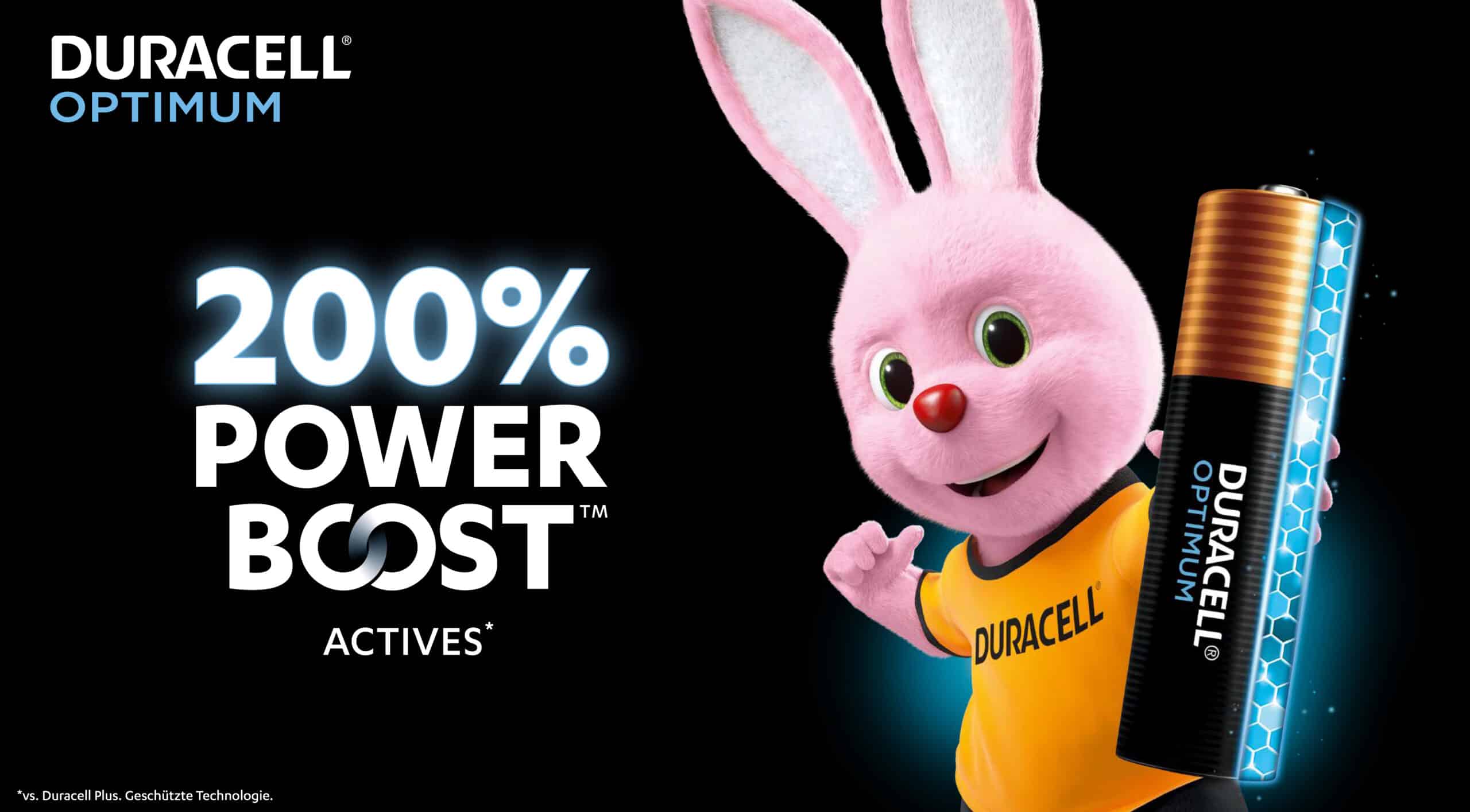 Weltmarktführer bei Alkaline-Batterien sowie führender Lieferant weiterer Batterietechnologien. Duracell liefert zuverlässige Energie für jeden Bedarf – von Haushaltsbatterien bis hin zu Speziallösungen wie Lithium-, Hörgeräte- und Uhrenbatterien. Mit Duracell Optimum setzt Duracell einen neuen Massstab: Die bislang innovativste Batterie bietet bei mittlerem bis hohem Stromverbrauch bis zu 200% mehr Leistung und damit spürbar länger anhaltende Energie für anspruchsvolle Geräte.