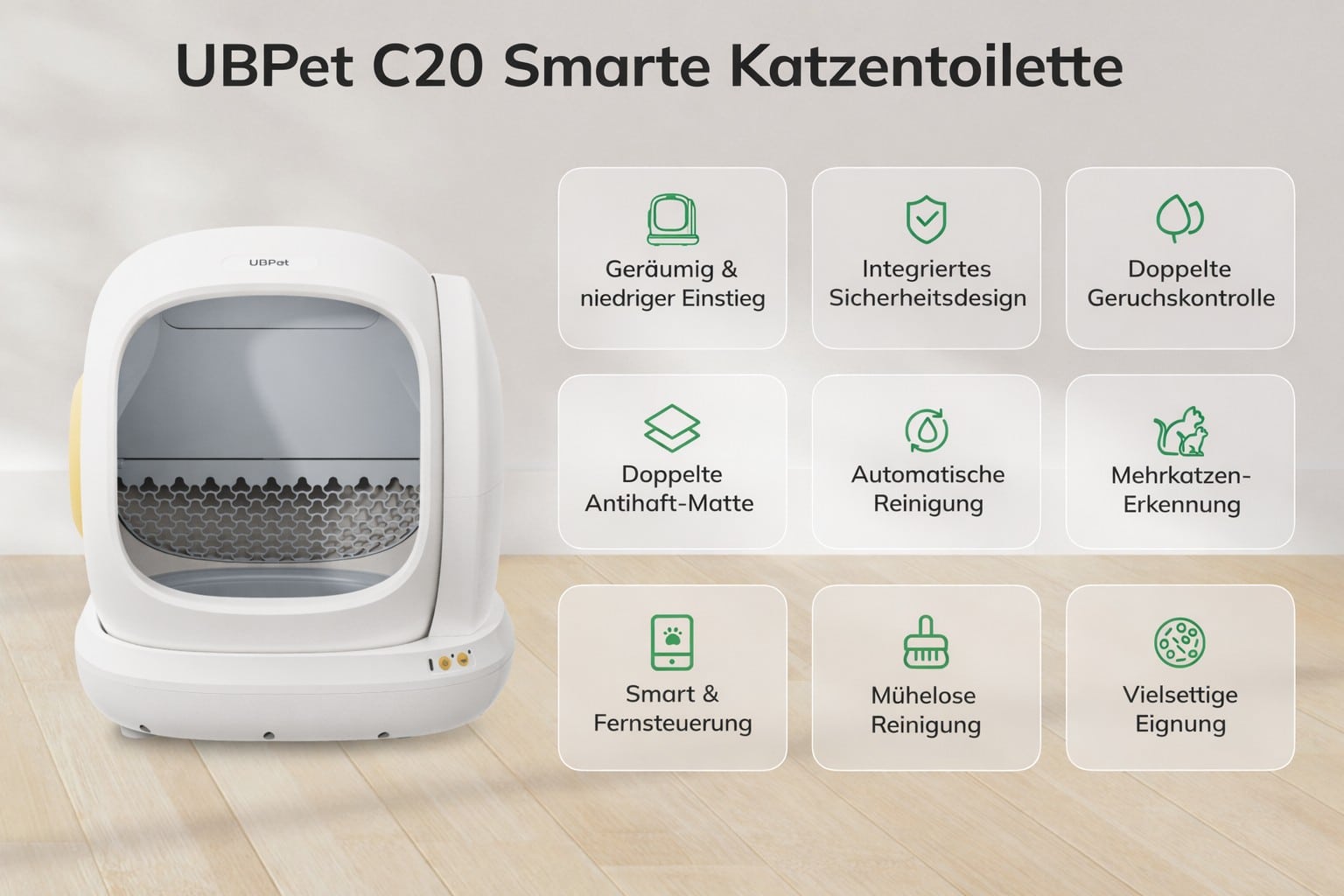 UBPet ist eine Marke im Bereich moderner Haustier-Technologie, die sich auf intelligente und automatisierte Produkte für Katzen und andere Haustiere spezialisiert hat. Im Mittelpunkt stehen vor allem smarte Lösungen wie selbstreinigende Katzentoiletten, automatische Futterspender und weitere elektronische Geräte, die Komfort, Hygiene und Kontrolle verbessern. Die Produkte zeichnen sich durch Funktionen wie automatische Reinigung, Geruchskontrolle und Fernsteuerung per App aus.